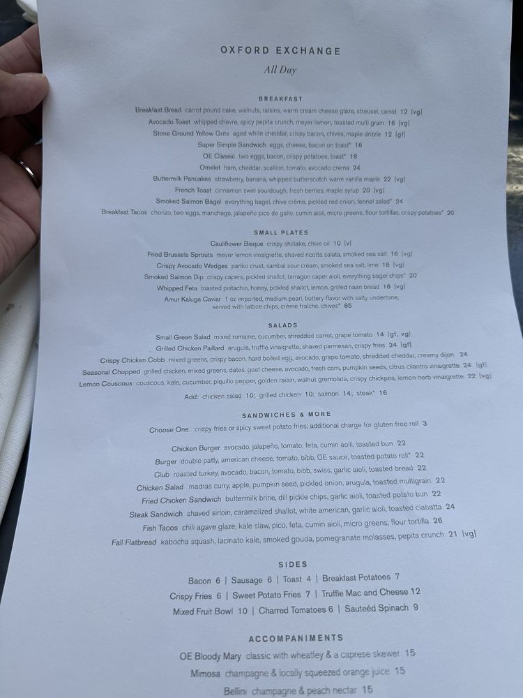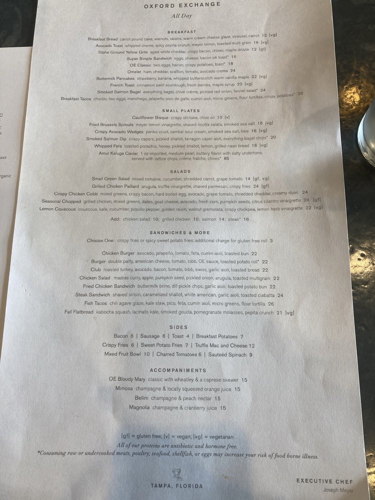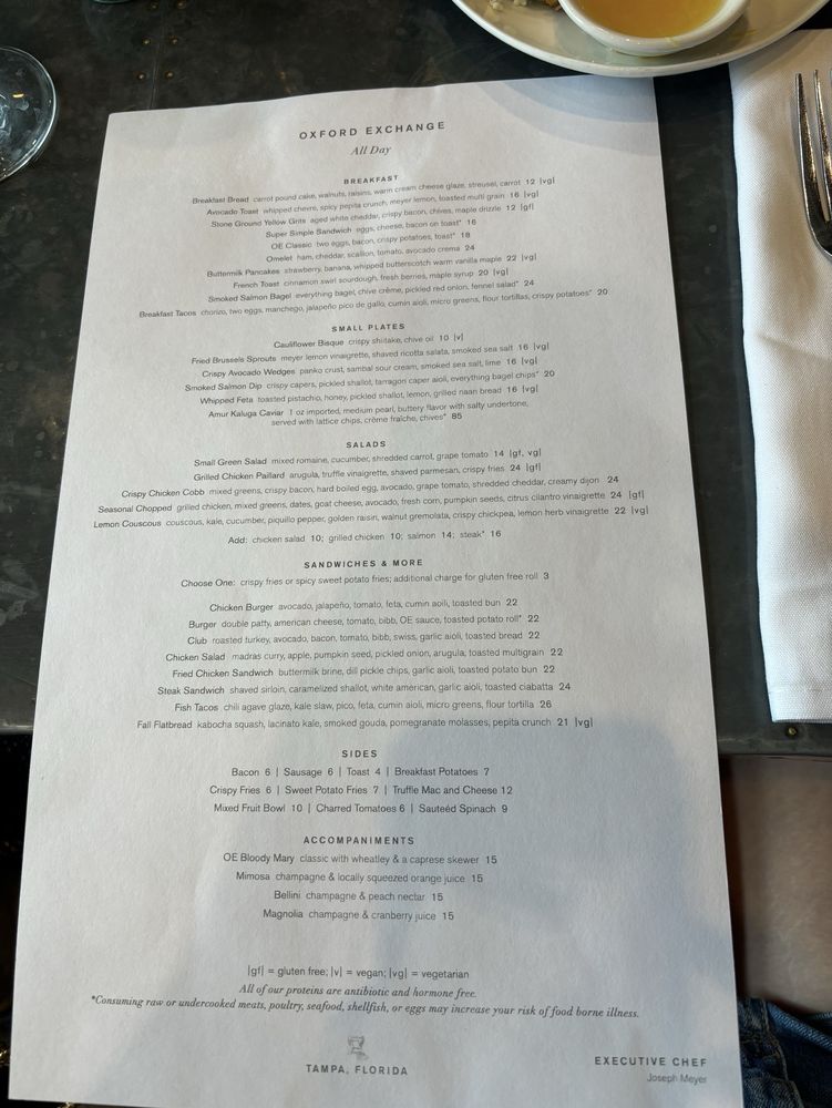 Step into the sophisticated ambience of Oxford Exchange in Tampa, FL, a unique blend of bookstore, venue, and American eatery. From the cozy seating to the trendy decor, this establishment exudes charm and elegance. Embrace the diverse menu offering vegan and vegetarian options, including Fried Brussel Sprouts, Kale Chips, and Crispy Chick Peas for starters. Indulge in flavorful soups like Chili and Butternut Squash, or savor refreshing salads like Cobb Wedge and Autumn Kale. Customer reviews rave about the impeccable service and exceptional dishes, with highlights like Whipped Feta with honey, pistachios, and the Feta Dip. Whether it's a peaceful breakfast or a lively brunch, Oxford Exchange provides a memorable dining experience for all, reflecting culinary and architectural excellence in every bite.